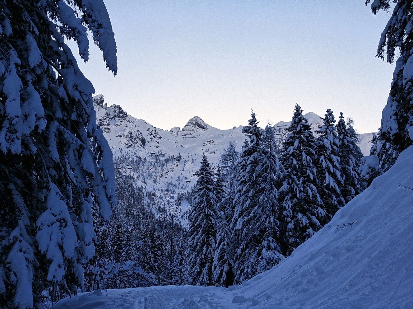 Itinerario per ciaspole che si snoda su una comoda stradina ideale per familiarizzare con questi strumenti invernali. Da Fenile (1263 m) si parte seguendo quello che è il “percorso salute” (dopo il secondo ponte sul Bitto ad occidente rispetto al nucleo abitato), proseguendo in leggera salita attraverso una magnifica pecceta fino a raggiungere Pescegallo (1454 m). Da qui, prestando attenzione all’eventuale presenza di ghiaccio, si raggiunge il Rif. Salmurano (1850 m) seguendo un sentiero chiamato “la stradina”.